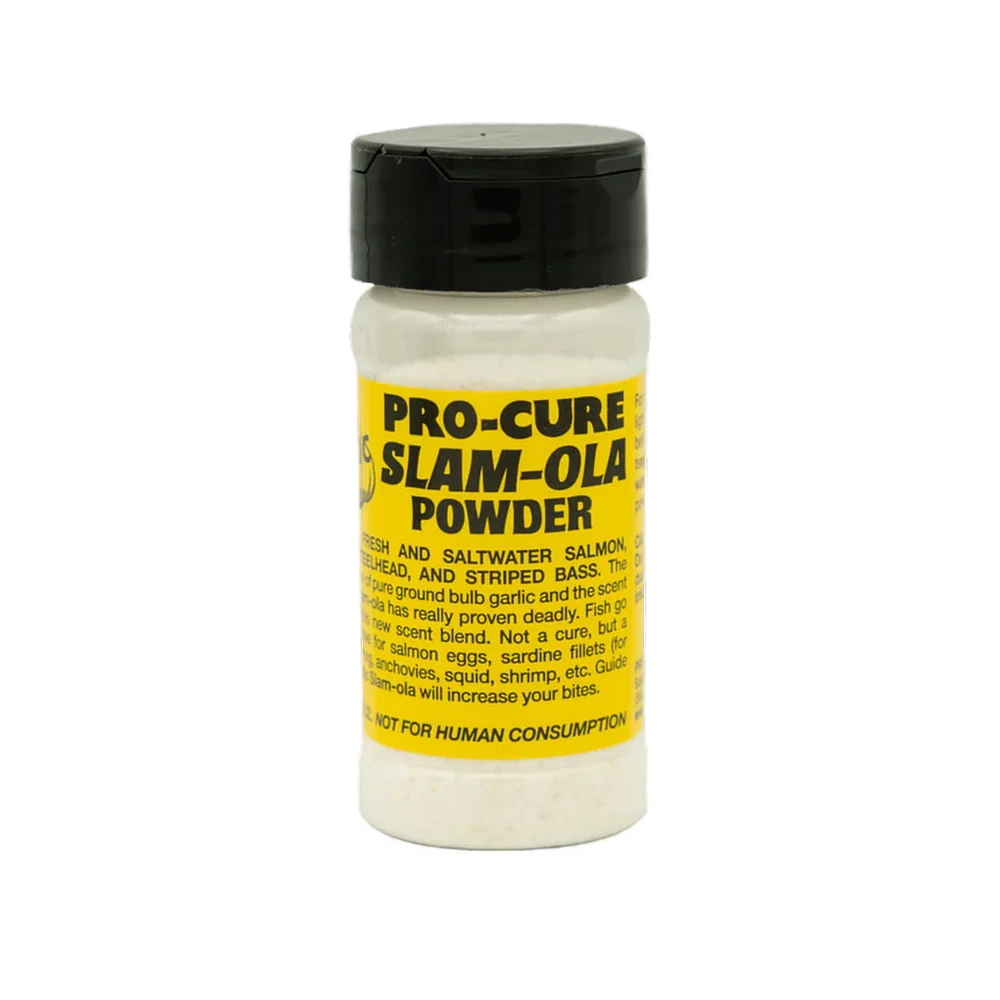 Since it’s introduction in 1989 Slam-ola powder has proven itself to be one of the hottest scents ever developed for salmon and steelhead. Slam-ola is a chemical scent powder that does best when given a few hours to marinate into your bait. Hundreds of guides and many thousands of anglers regularly sprinkle Slam-ola powder on their eggs to get a tough bite going. It’s also a great additive to sardine fillets for Qwikfish wraps.